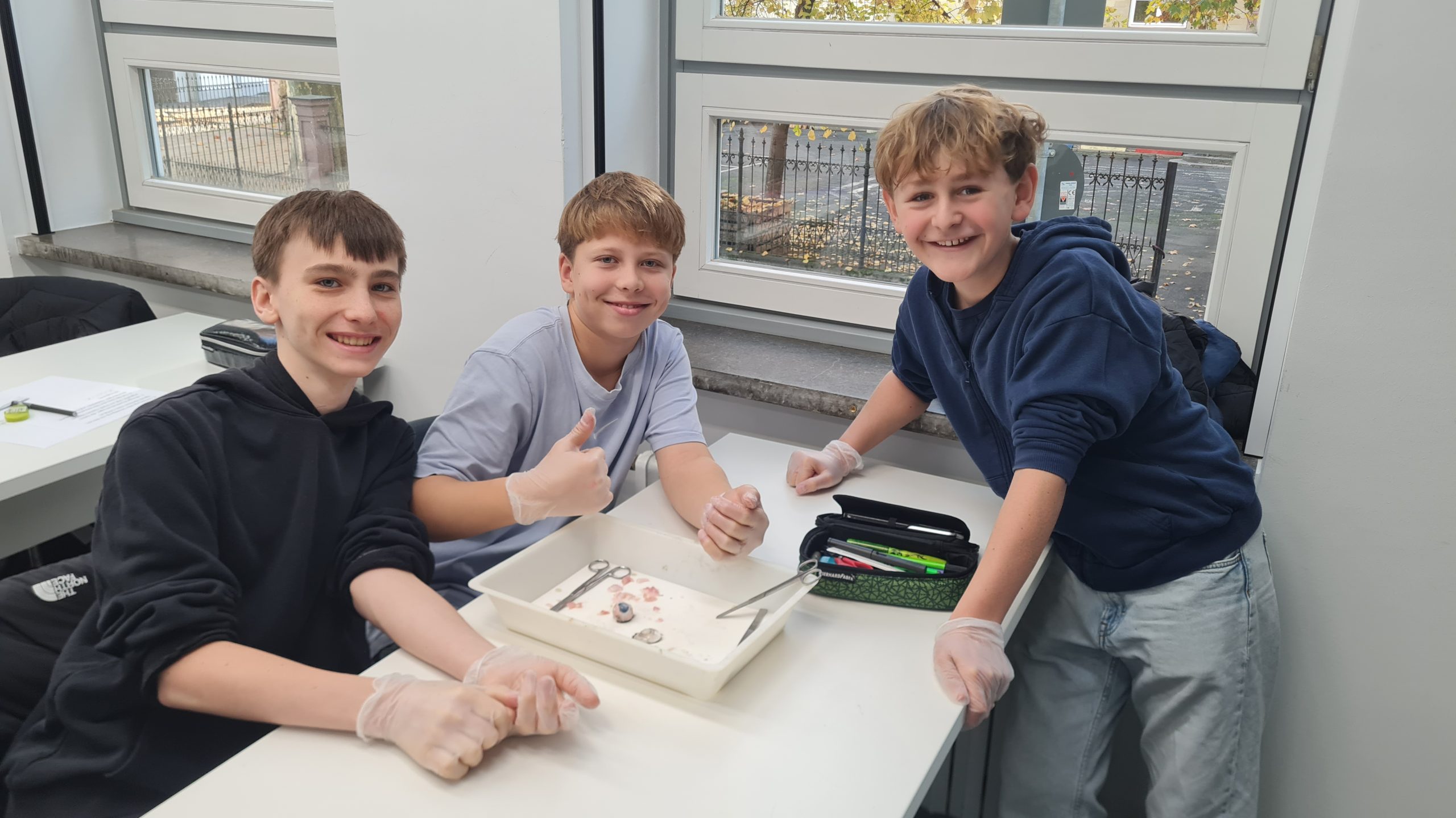 In der Woche nach den Herbstferien hatten unsere Schülerinnen und Schüler der 8. Klassen die Möglichkeit, sich mit dem Thema „Auge“ etwas genauer zu beschäftigen – dazu durften die Jugendlichen Schweineaugen betrachten, anfassen und sogar aufschneiden. Die Bausteine eines Auges nicht nur theoretisch zu besprechen, sondern diese am echten Auge einzeln herauszupräparieren, vertieft ungemein das biologische Verständnis dieses wichtigen Sinnesorgans.