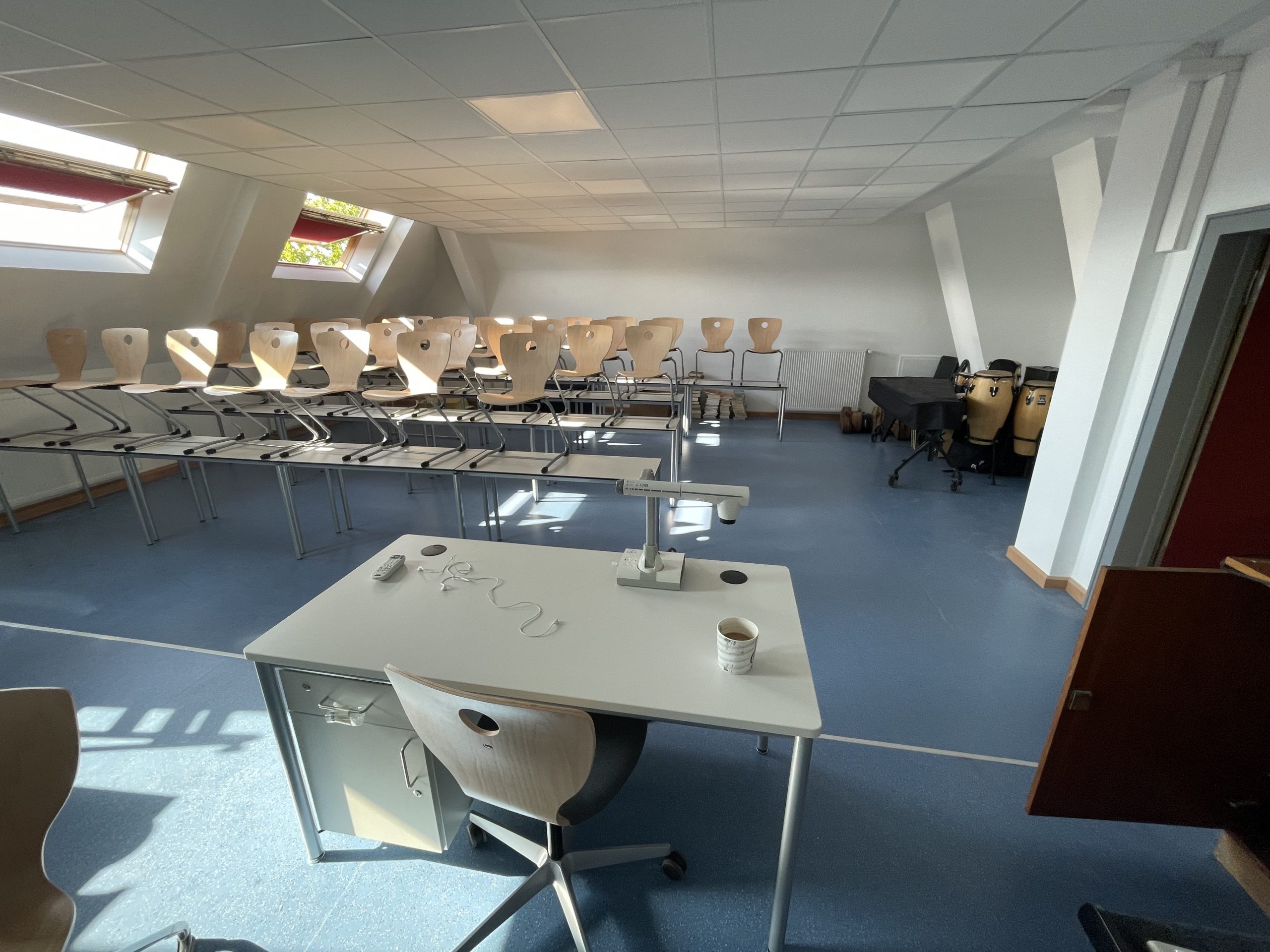 Daneben steht ein zweiter Musikraum mit allen für den Musikunterricht notwendigen Materialien zur Verfügung.